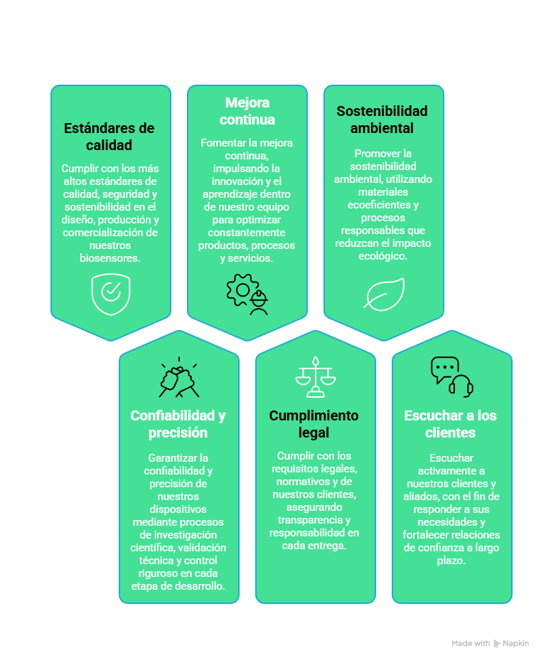 Política de Calidad En Dikots, nos comprometemos a desarrollar y fabricar biosensores inteligentes que garantizan la seguridad, frescura y calidad de los alimentos, ofreciendo soluciones innovadoras que facilitan decisiones conscientes en la cadena agroalimentaria.