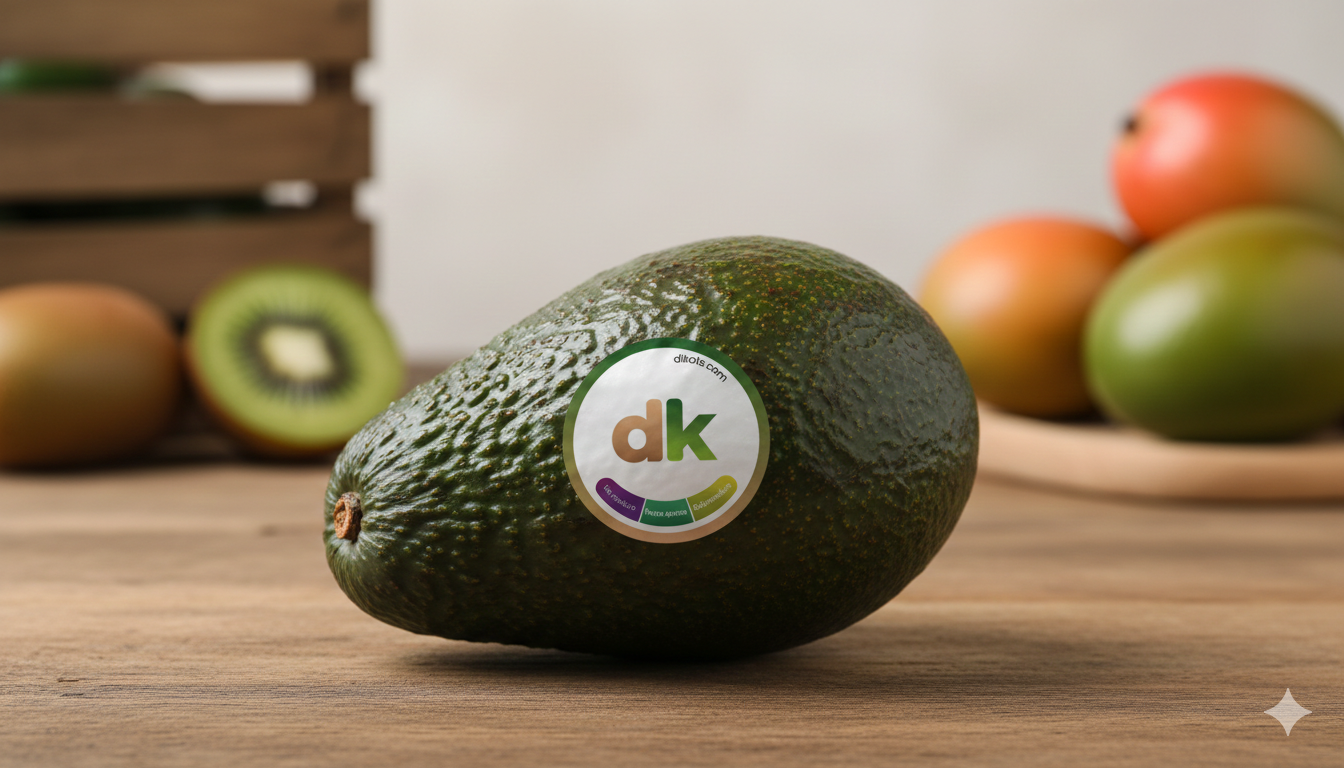 Etiquetas-biosensores de forma circular, con capacidad para adherirse a una gran variedad de frutas, permiten a los consumidores identificar de forma sencilla el estado de maduración y conservación de las mismas. El sticker tiene tres gamas de colores, morado para informar el estado tierno de la fruta, verde para informar de su estado óptimo y amarillo para informar que está sobre maduro.